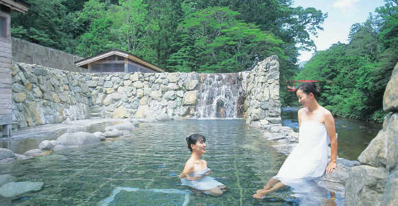 This hot spring area is a quiet public health resort located along the Ohata River about 10 km upstream from the Tsugaru Channel.